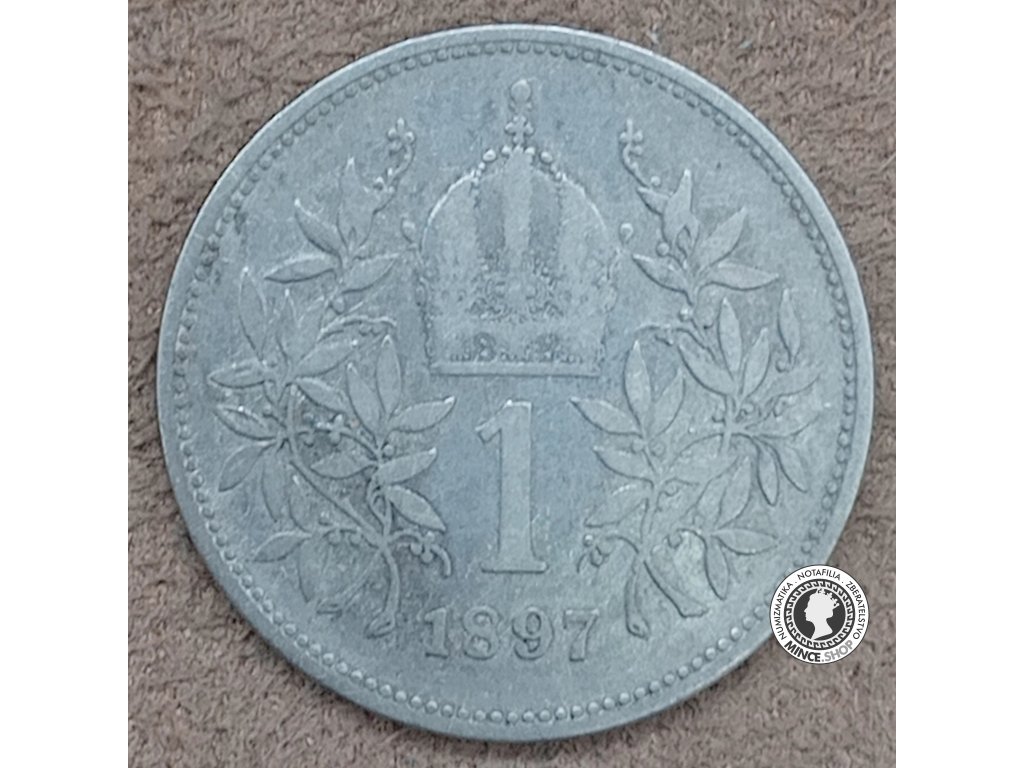 Strieborná historická obehová minca minca v hodnote 1.koruna z roku 1897, panovník František Jozef I., Rakúsko-Uhorsko