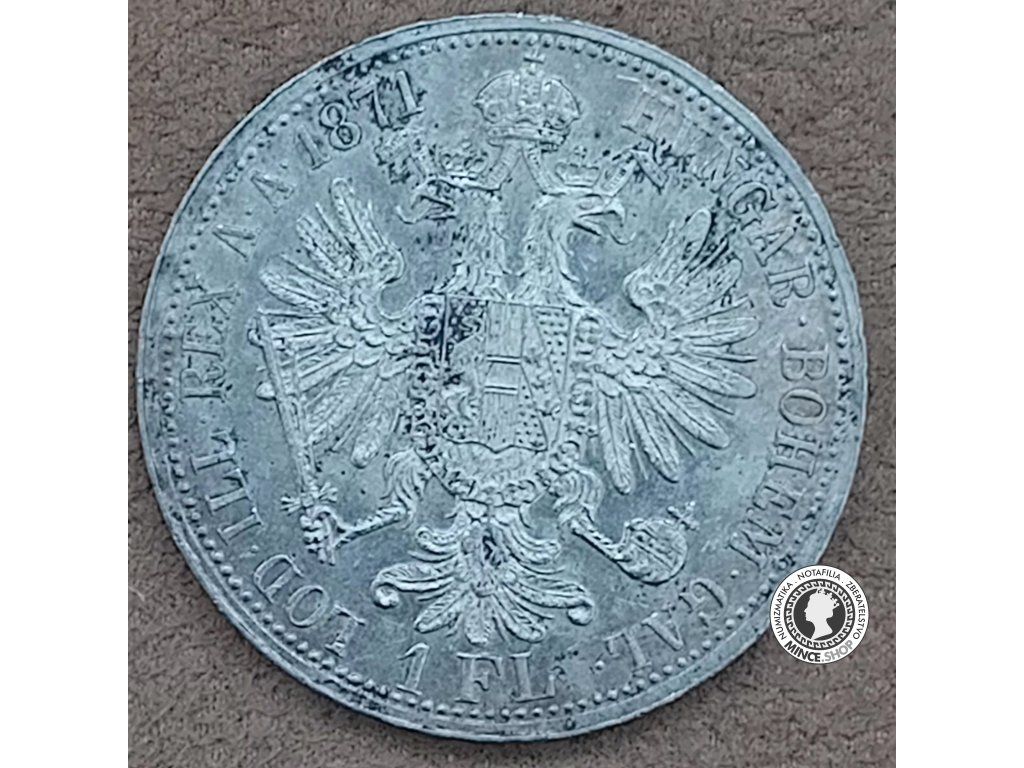 Strieborná historická obehová minca v hodnote 1.florin z roku 1871, panovník František Jozef I., Rakúsko-Uhorsko