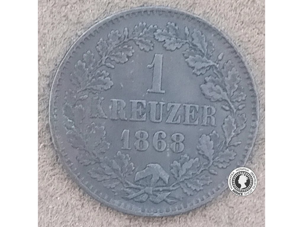 Historická obehová minca v hodnote 1.grajciar z roku 1868, Badenské veľkovojvodstvo (1806 - 1871)