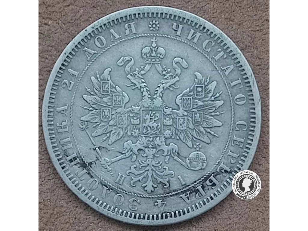 Strieborná historická obehová minca v hodnote 1.rubeľ z roku 1877, cár Alexander II (1855 - 1881), Ruská Ríša