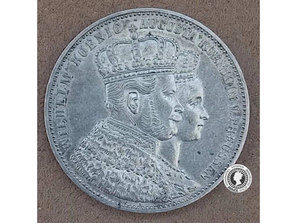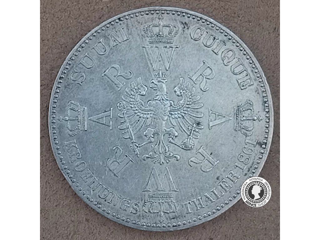 Historická obehová minca v hodnote 1 toliar z roku 1861, korunovácia Wilhelma a Augusty, panovník Wilhelm I., Pruské kráľovstvo (1821 - 1873)