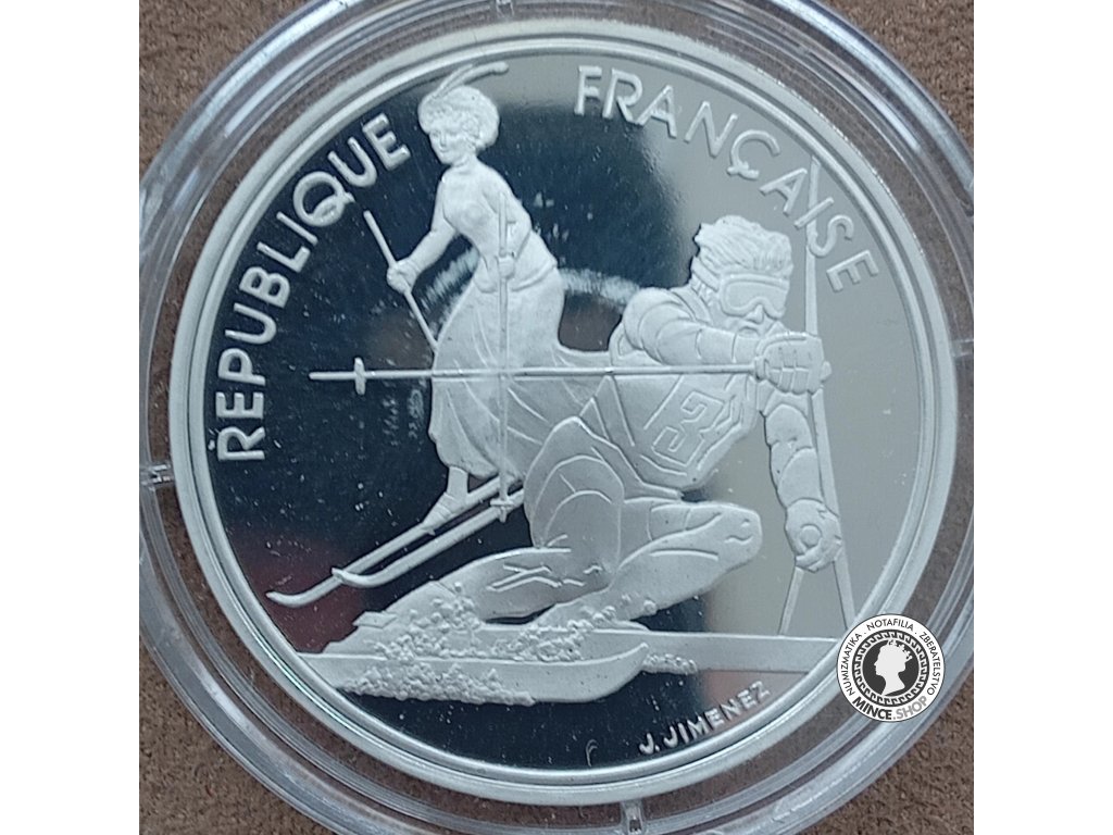 100 francs 1990 Francúzsko PROOF - Albertville 92 - Slalomeur de la Belle Époque