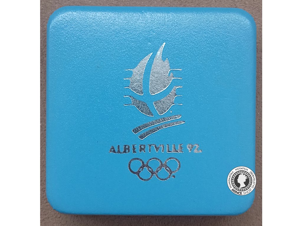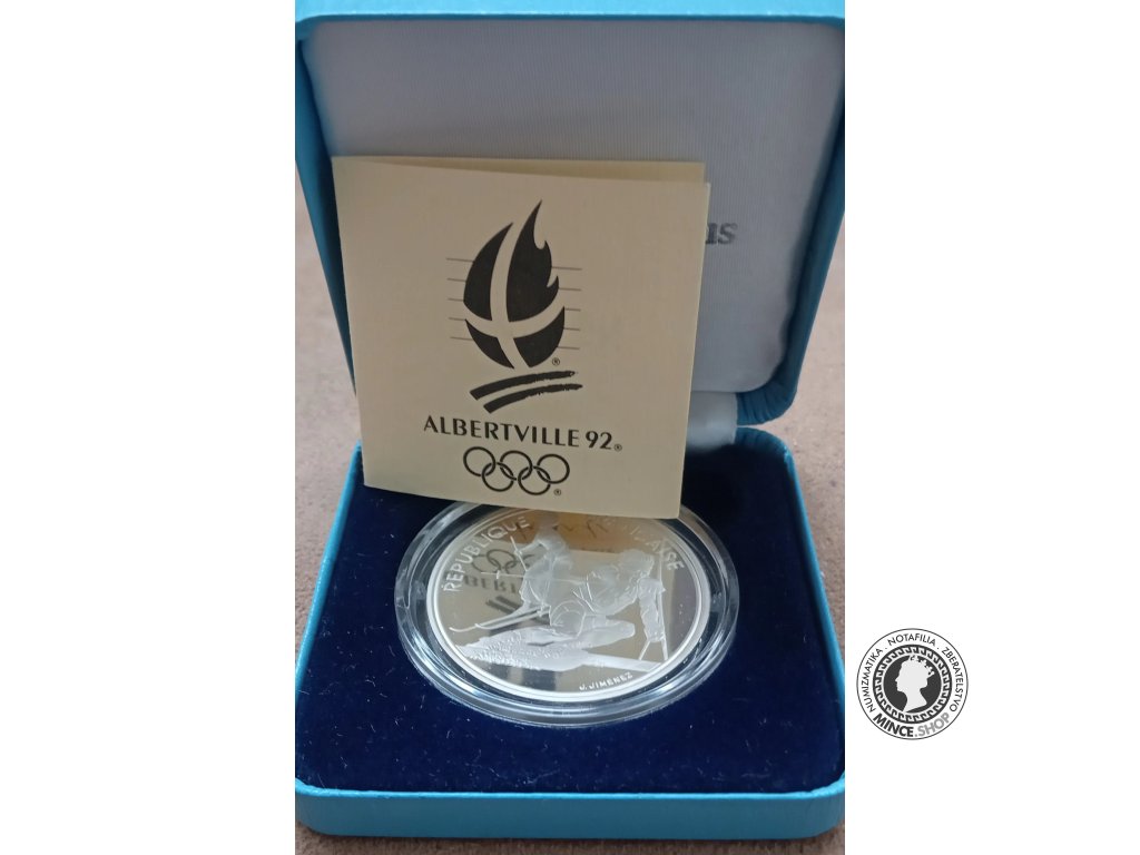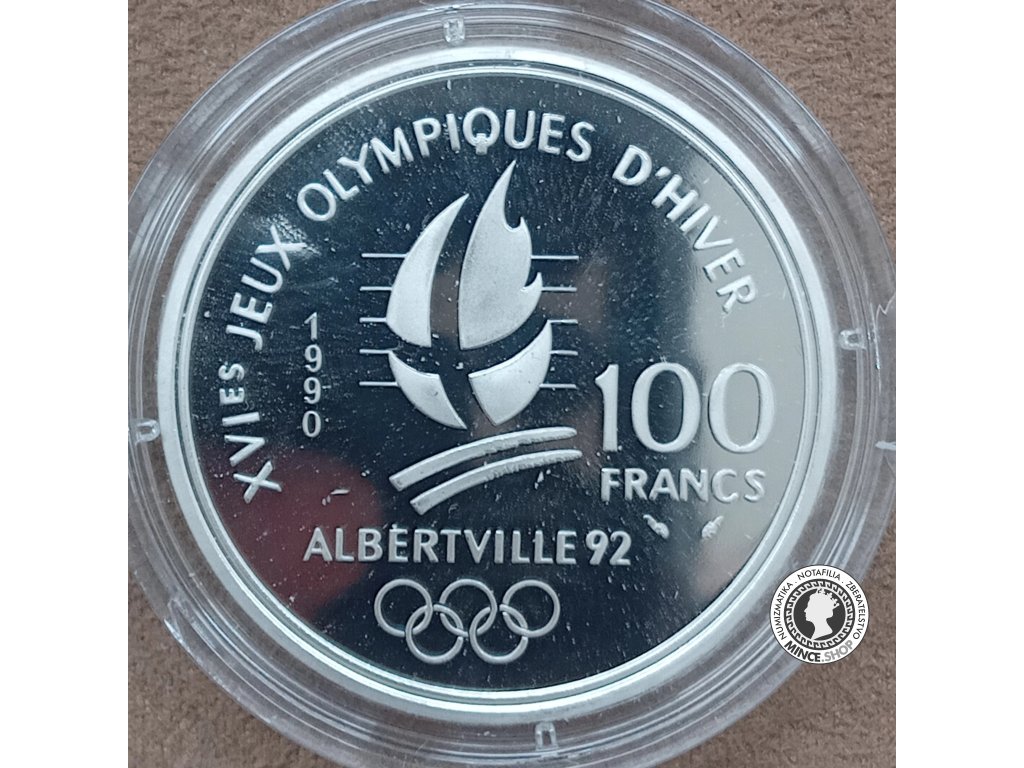 Pamätná strieborná 100 franková minca z roku 1990 vydaná pri príležitosti ZOH Albertville 1992.