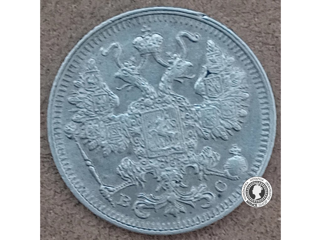 Strieborná historická obehová minca v hodnote 15.kopejok z roku 1916, cár Mikuláš II (1894 - 1917), Ruská Ríša