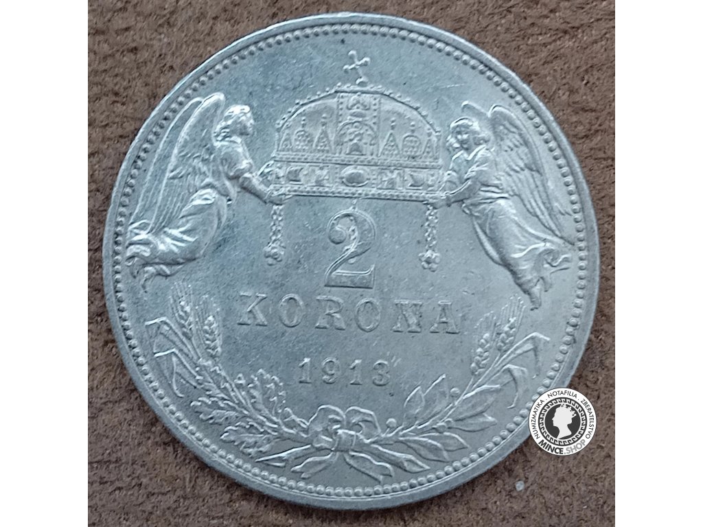 Strieborná historická obehová minca v hodnote 2.koruny z roku 1913, panovník František Jozef, Rakúsko-Uhorsko