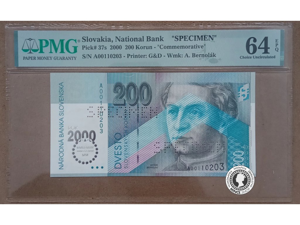 Obehová bankovka v hodnote 200.korún, Slovensko 1995, séria bimilenium, PMG