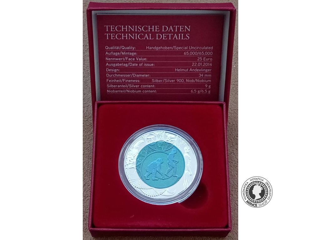 25€ pamätná minca Evolution, 2014, Rakúsko