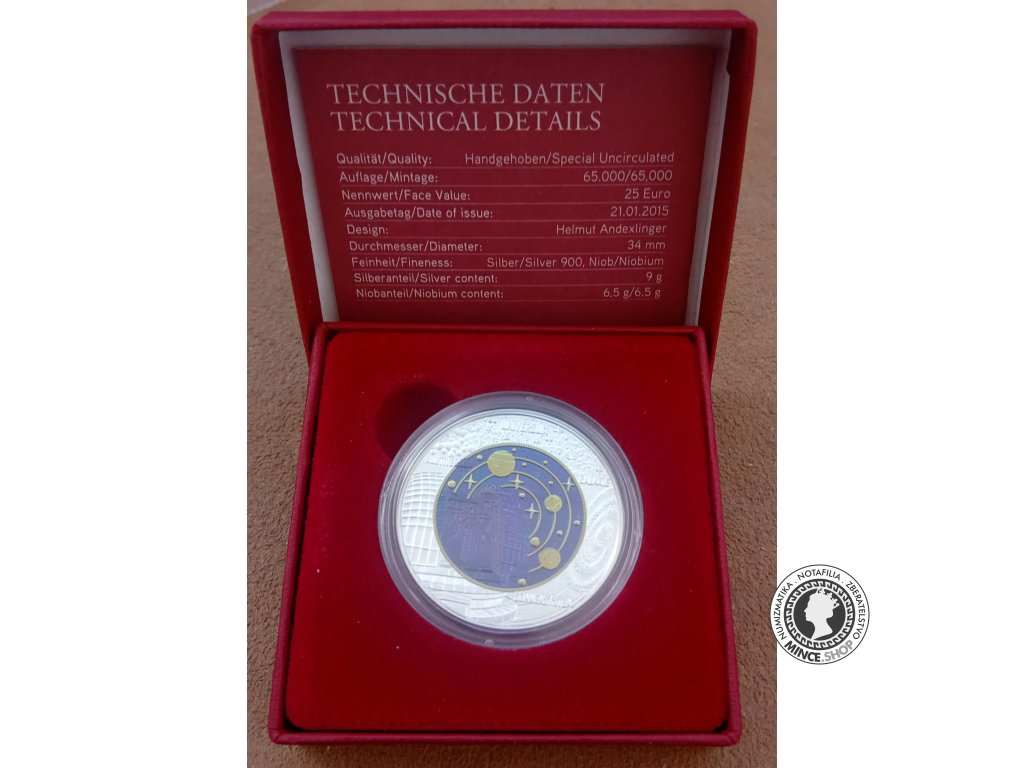 25€ pamätná minca Kosmologie, 2015, Rakúsko