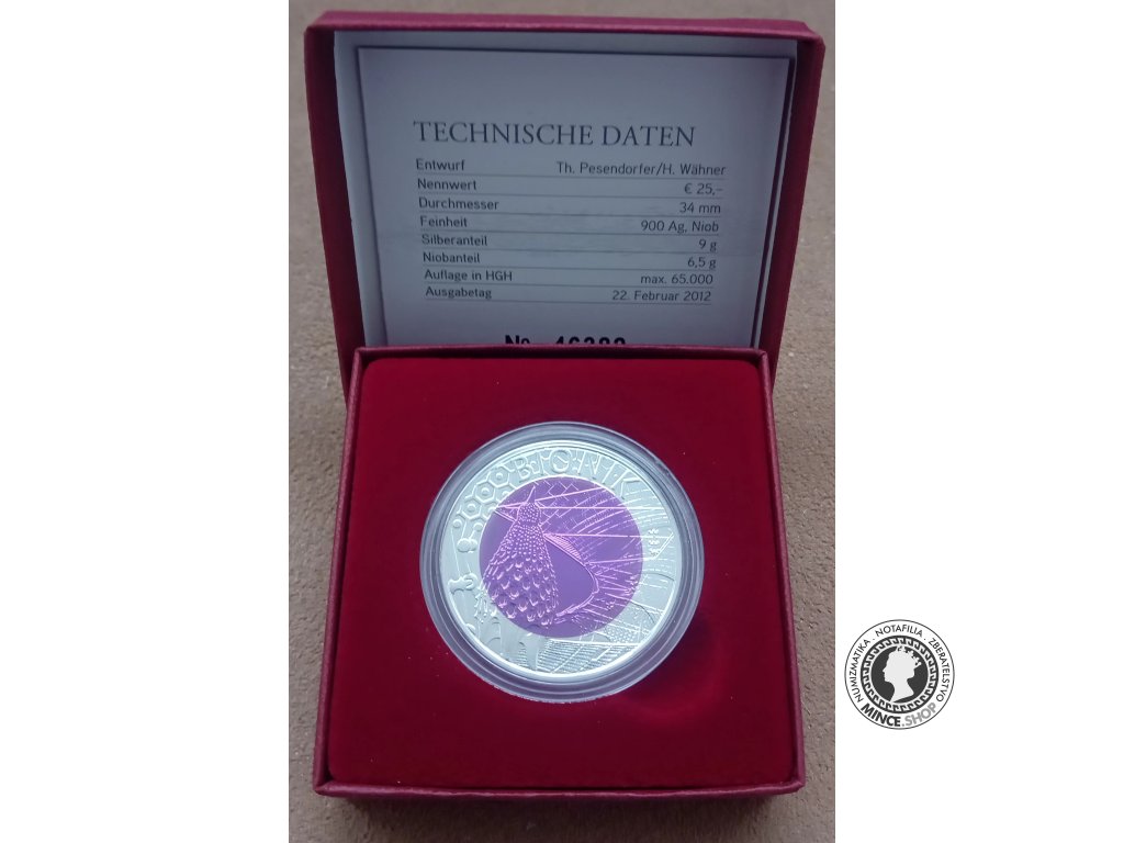 25€ strieborná nionium minca Rakúsko 2012 -Bionik
