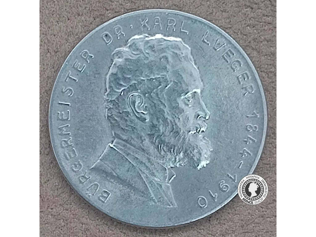 Strieborná zberateľská minca vydaná pri príležitosti 25.výročia narodenia Karla Luegera. Rakúsko - Prvá republika (Shilling) (1925 - 1938)