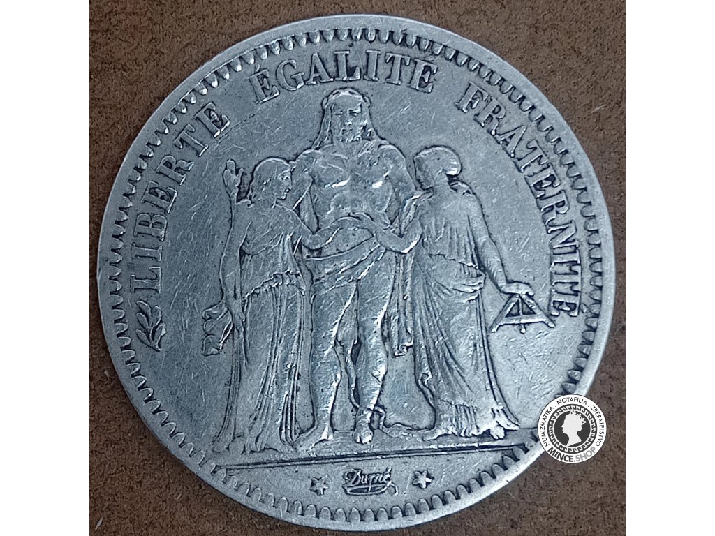 Historická strieborná obehová minca v hodnote 5 frankov z roku 1870, Hercules Group, Druhá Republika