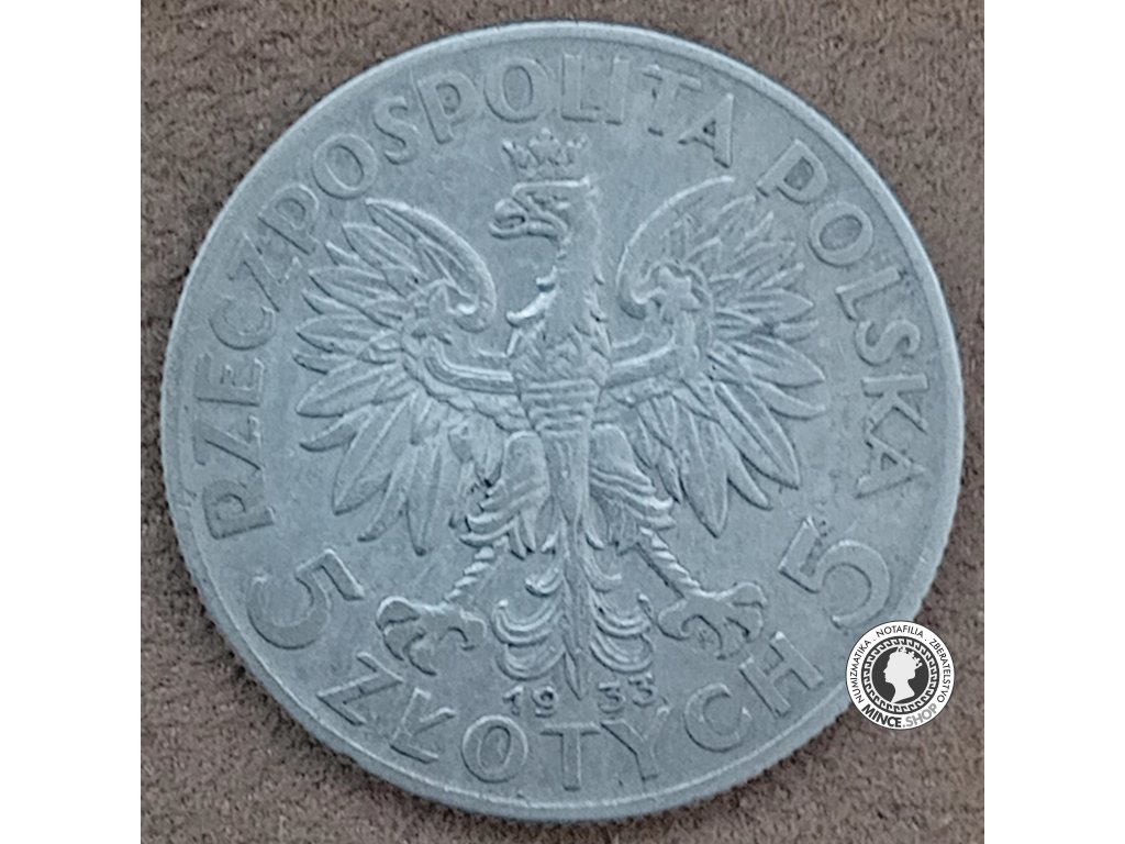Strieborná historická obehová minca v hodnote 5.zlotych z roku 1933, Poľsko, druhá republika