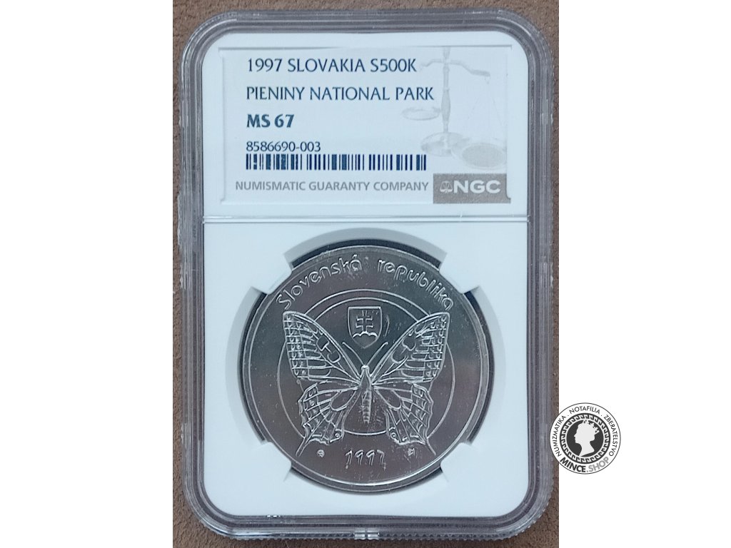 500 Sk - strieborná minca 1997 -Pieniský národný úark - MS 67