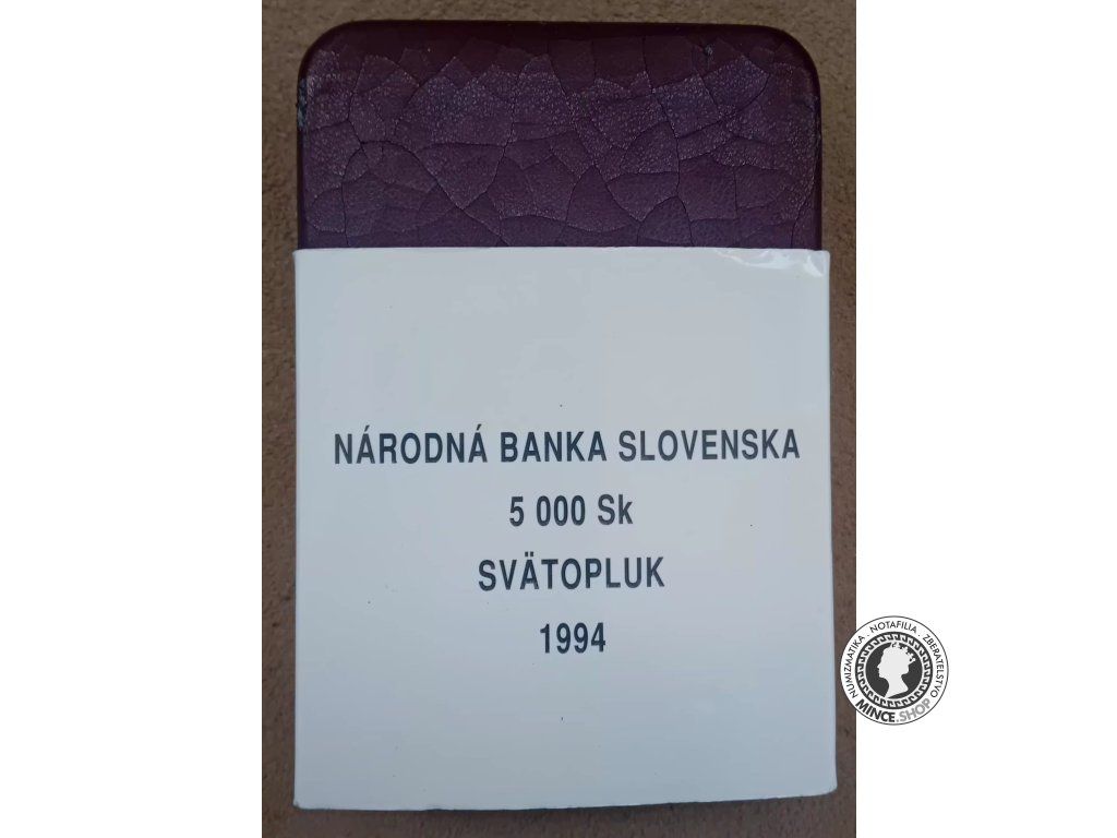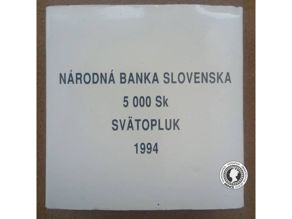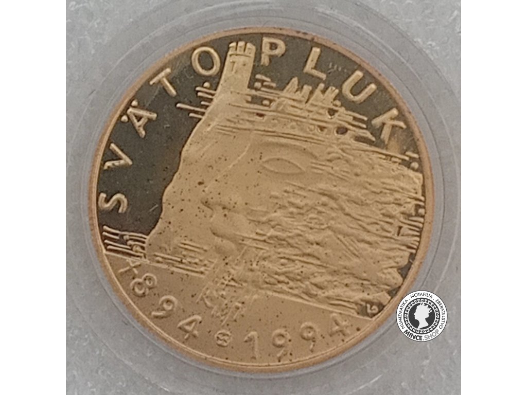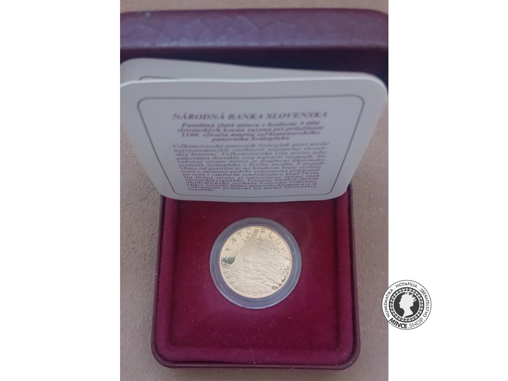 Pri príležitosti 1 100. výročia úmrtia panovníka Veľkomoravskej ríše Svätopluka bola vyhláškou Národnej banky Slovenska č. 342/1994 Z. z. vydaná pamätná zlatá minca v hodnote 5 000 Sk. Národná banka Slovenska začala mincu predávať 21.12.1994.[3]