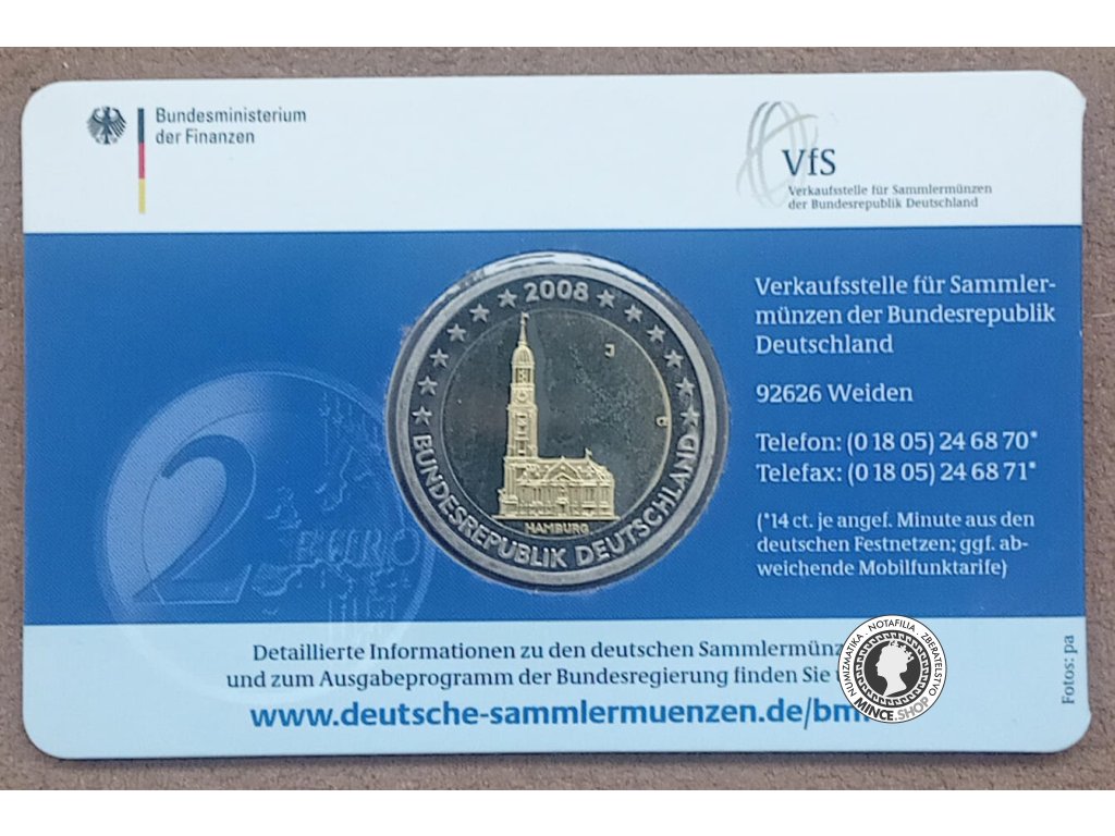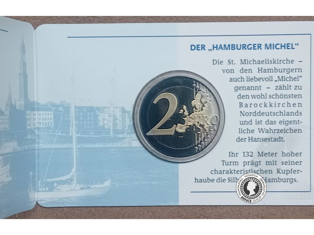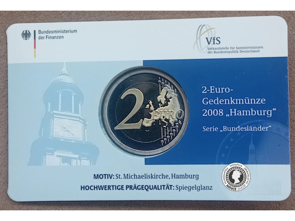 Pamätná 2 euro minca vydaná v mincovni Hamburg. Nemecko, 2008