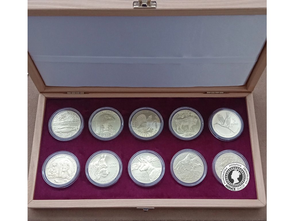 Kompletná drevená kazeta s 5€ mincami "Fauna a Flóra na Slovensku"