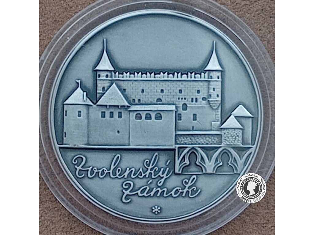 Obojstranná postriebrená a patinovaná medaila z edície "Slovenské hrady a zámky" s motívom zámku "Zvolen".