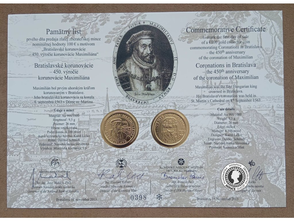 Pamätný list 2013 Bratislavské korunovácie - 450.výročie korunovácie Maximiliána