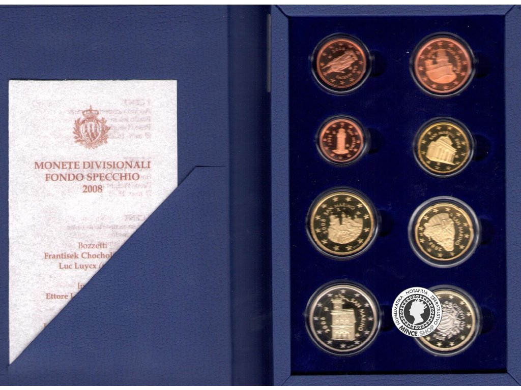 Sada obehových mincí San Marino 2008 v PROOF kvalite.