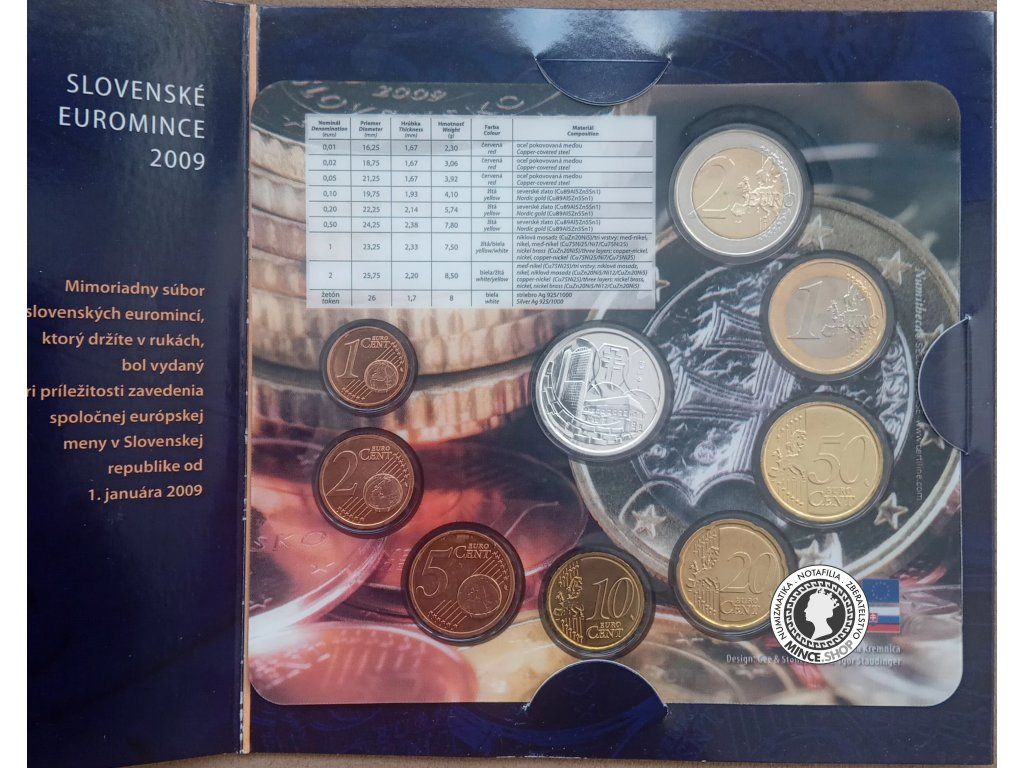Sada mincí SR 2009 - Prvý súbor slovenských euromincí BK + strieborný žetón