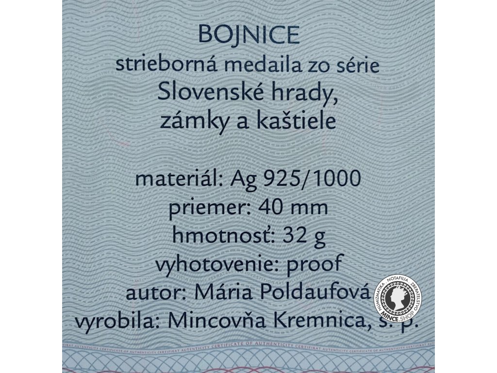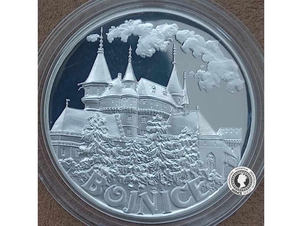 Dvojstranná strieborná medaila zo série ''Hrady a zámky na Slovensku'' s motívom zámku v Bojniciach.