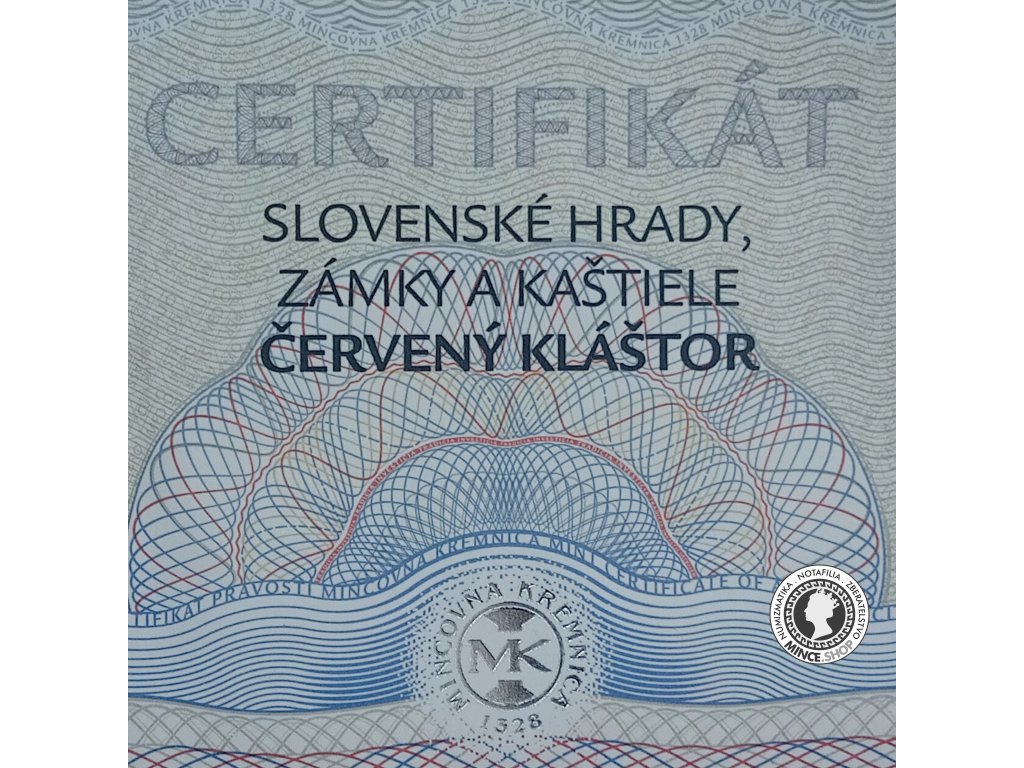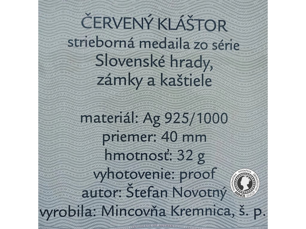 Dvojstranná strieborná medaila zo série ''Hrady a zámky na Slovensku'' s motívom Červeného Kláštora.