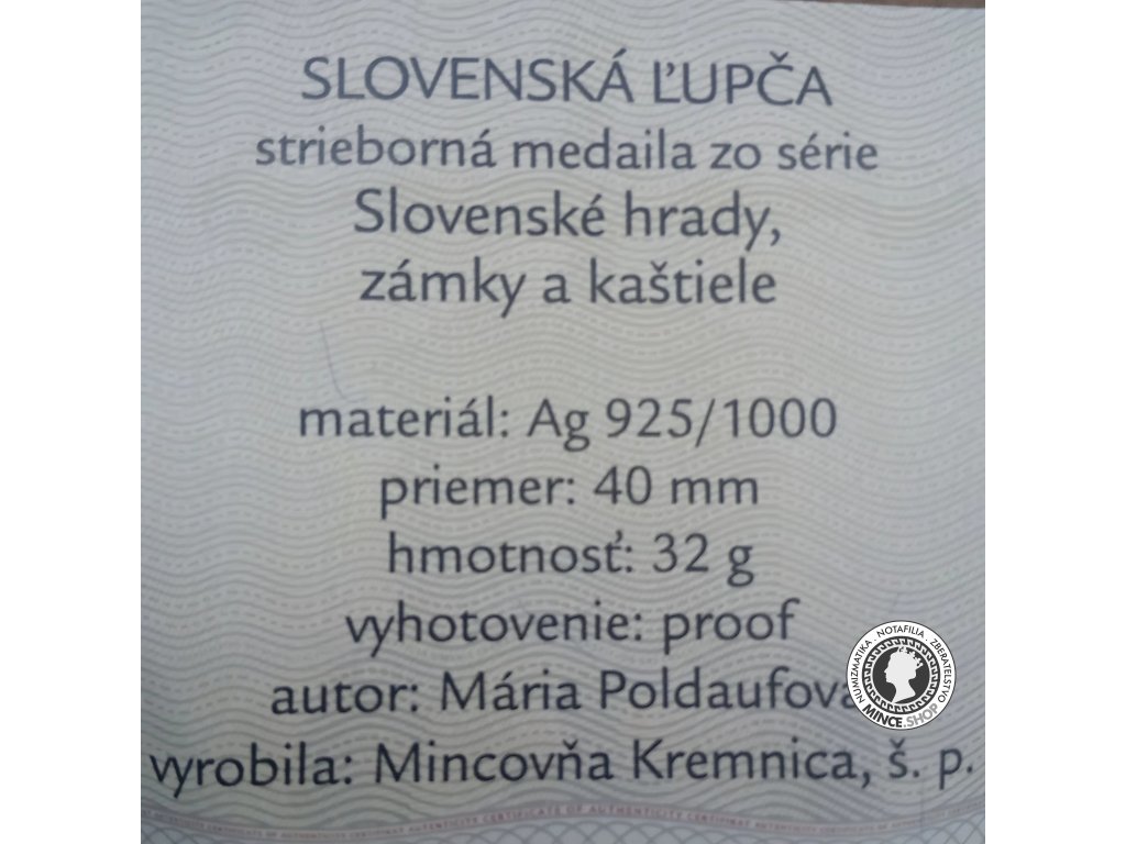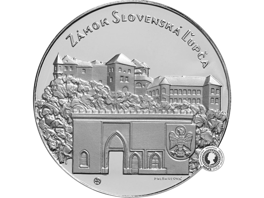 Dvojstranná strieborná medaila zo série ''Hrady a zámky na Slovensku'' s motívom zámku v Slovenskej Ľupči.