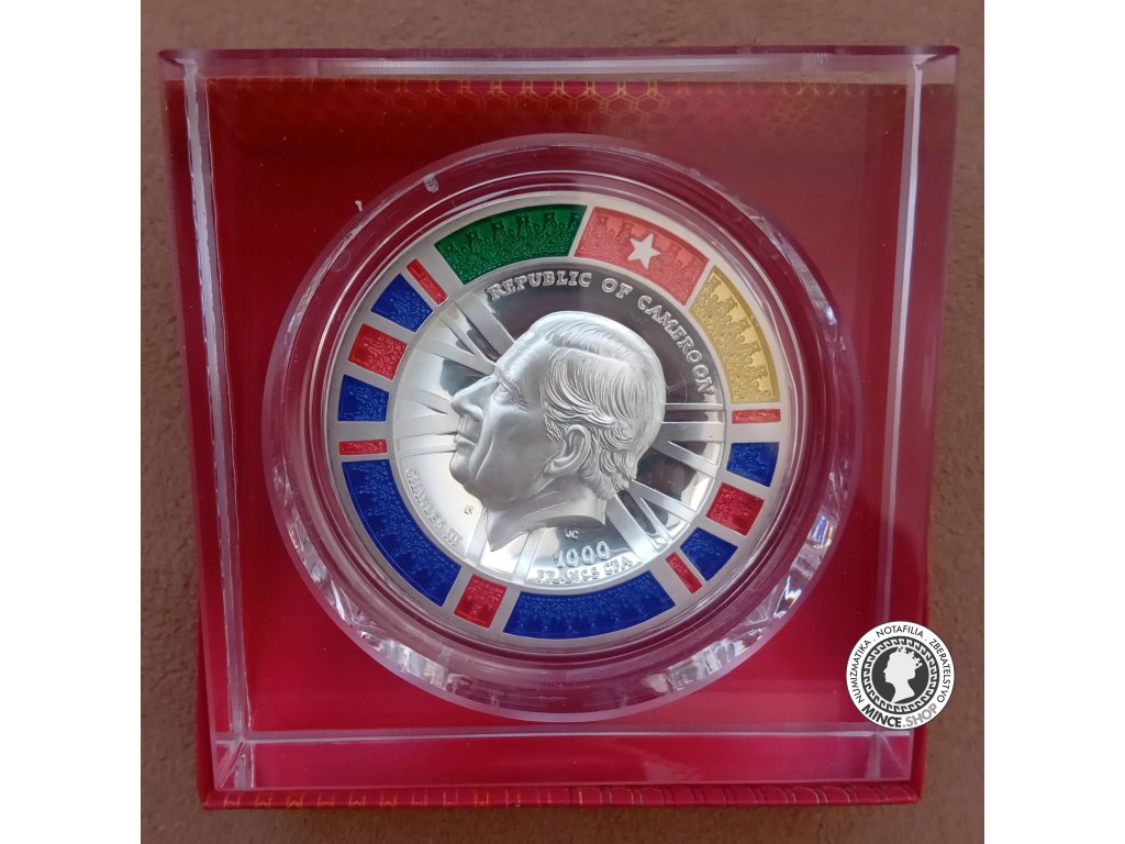 Siedma minca s vysokým reliéfom, z úspešnej a žiadanej série „Príbehy Zeme“. Zaujímavá je okrem iného tiež použitím priehľadného farebného smaltu, dodávajúceho minci efekt väčšej priestorovosti. Na averze mince bude znázornený motív zobrazujúci tému venovanú stavu životného prostredia a dôsledkom jeho zhoršujúcej sa kvality. Na reverze bude tradične symbol vydávajúcej autority Kamerun, nominál mince 1000 FRANCS CFA a portrét kráľa Karola.