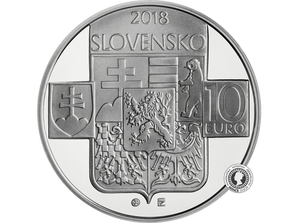 Na líci mince je zobrazený stredný štátny znak Československej republiky. V popredí vľavo od neho je štátny znak Slovenskej republiky a vpravo označenie nominálnej hodnoty mince 10 EURO. V hornej časti mincového poľa je názov štátu SLOVENSKO. Nad ním je letopočet 2018. Značka Mincovne Kremnica, ktorú tvorí skratka MK umiestnená medzi dvoma razidlami a štylizované iniciálky autora výtvarného návrhu mince akad. soch. Zbyňka Fojtů ZF sú v spodnej časti mincového poľa.