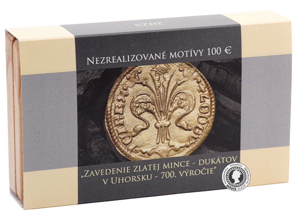 Strieborné medaily - Nezrealizované motívy zberateľských mincí- 100€ - Zavedenie zlatej mince - dukátu v Uhorsku - 700.výročie