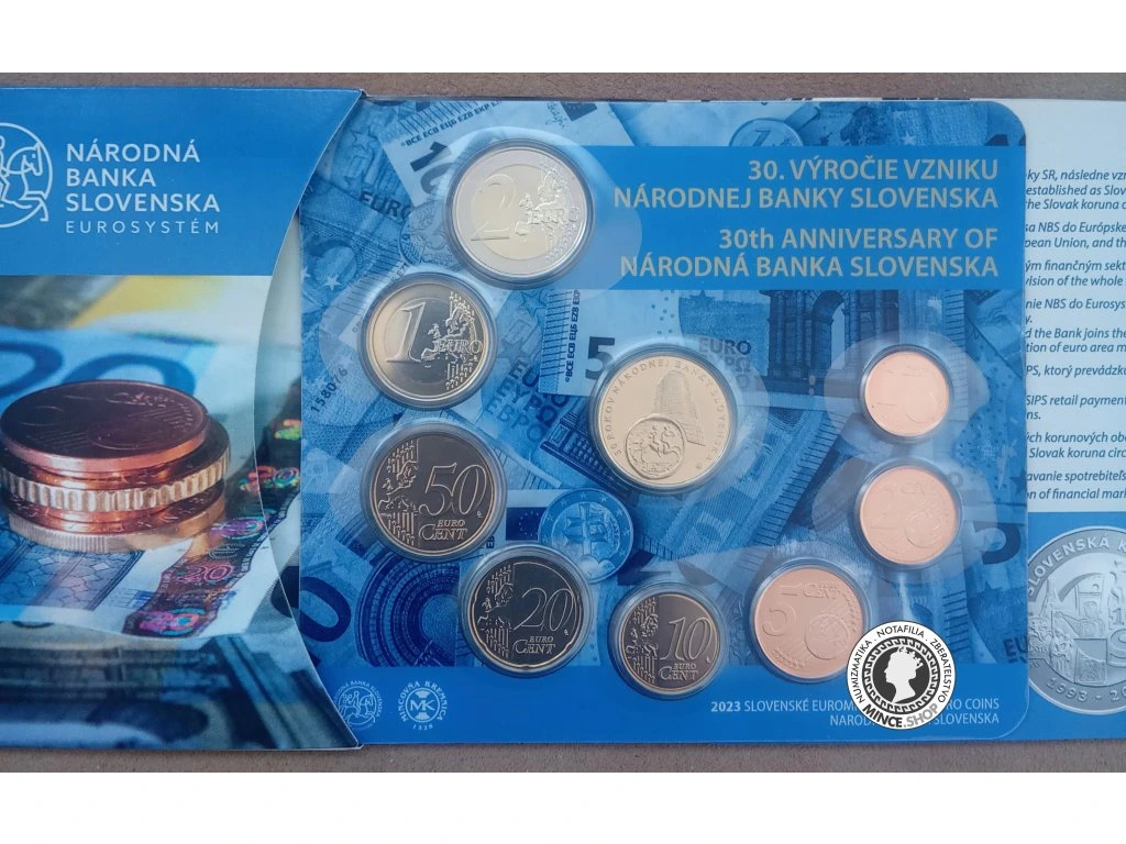 Súbor slovenských euromincí 2023 vydávaný pri príležitosti 30. výročia založenia Národnej banky Slovenska.